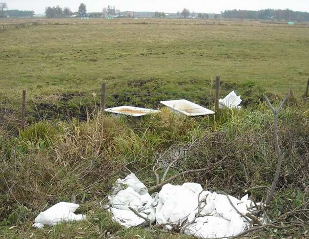 Jak rolnik zaśmieca środowisko na drodze w prawo za mostem w kierunku Rajgrodu Podpis: xyz