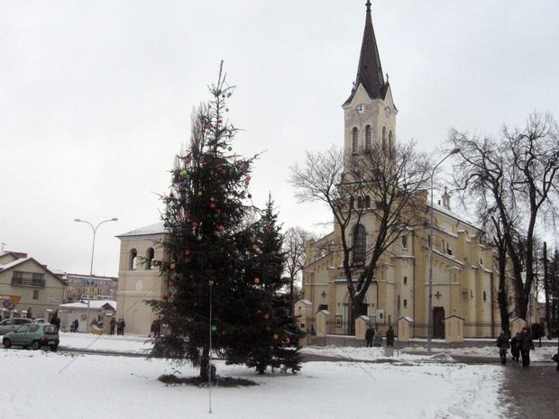 Choinka w centrum Grajewa, grudzień 2010 r.