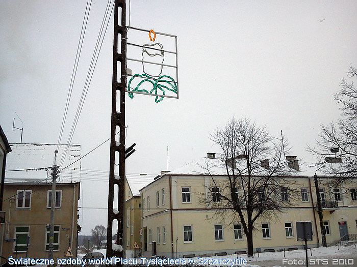 W Szczuczynie, wokół Placu Tysiąclecia, pośród neonów i innych świateł, na słupach energetycznych zainstalowano 19 świetlnych ozdób o charakterze typowo świątecznym: dzwonki, choinki, gwiazdki, etc. Jest to miły prezent, pod choinkę 2010 i rok 2011 dla wszystkich mieszkańców.