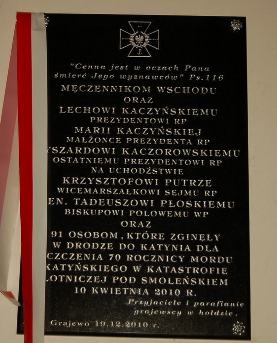 W kościele pw. Trójcy Świętej w Grajewie odsłonięto tablicę upamiętniającą ofiary katastrofy smoleńskiej
