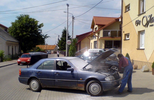 Grajewo, 14.06.2011 r.; nawet auta nie wytrzymują wysokich temperatur;