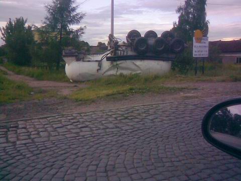 Pechowy zakręt w Prostkach. Podpis: Paweł