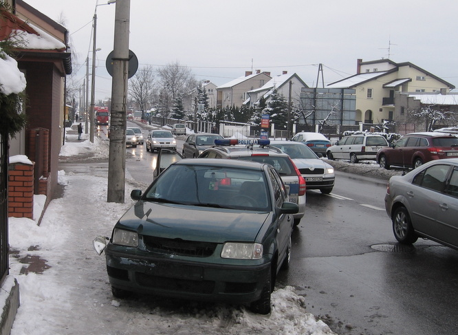 8.02.2013 r. - Grajewo, ul. Kopernika; uwaga na trudne warunki na drogach, tym razem skończyło się na lekkiej stłuczce;