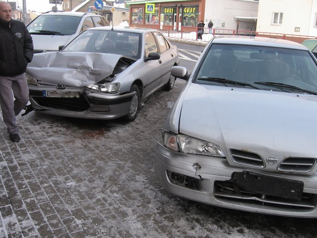 Uwaga kierowcy, należy zachować ostrożność - pechowy 13 marca 2013, kolizja trzech samochodów osobowych; Grajewo ul. Wojska Polskiego;