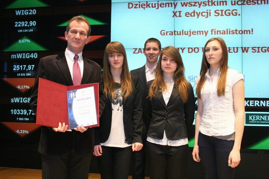 Zespół GIG 2 z II LO w Grajewie (Zespół Szkół Nr 2), w czasie uroczystej Gali zakończenia SIGG 11. Justyna, Karolina, Paulina i Artur - zwycięzcy regionu podlaskiego. Podpis: Fot: za zgodą Fundacji PAGA 2065