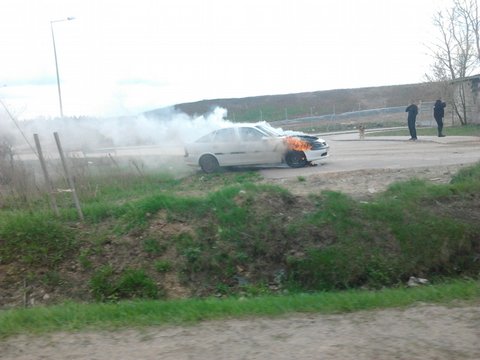 2013 r., Koszarówka przy DK nr 65 płonący opel vectra