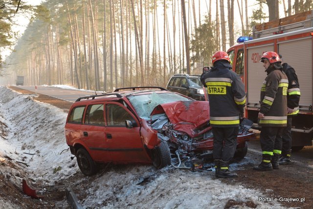 13 lutego br. ok godz. 14.00 za Rudą Opel Astra uderzył w drzewo; kierowcę zabrano do szpitala, był przytomny;