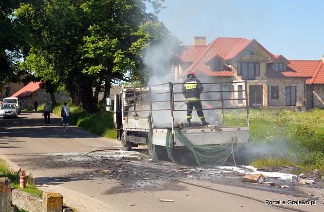 1.06.2015 r. ok godz. 10.00; droga Grajewo - Wojewodzin - zapalił się ładunek na samochodzie ciężarowym Man