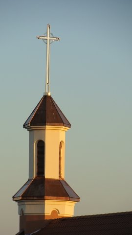 Jedna z wież postawiona na Kościele Ojca PIO w Grajewie- Osiedle Południe. zdj.z dnia 17.08.2015 o zmierzchu....... Podpis: Anna