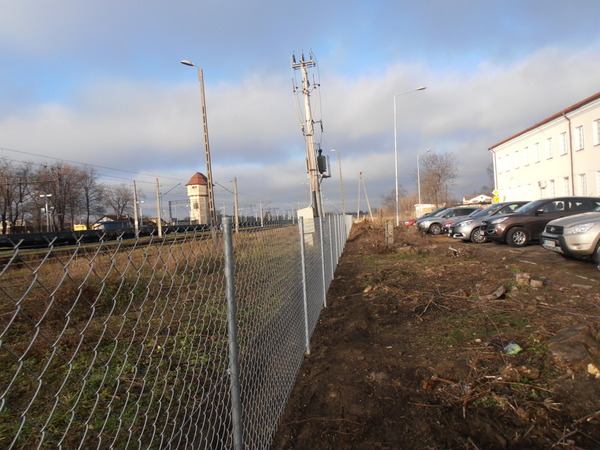 Nowe ogrodzenie na ul. ks. Popiełuszki, pomiędzy Starostwem a dworcem PKP.