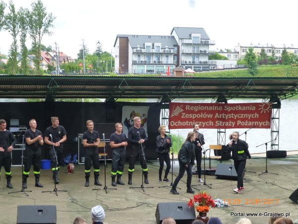 Zespół "STANSDY" z OSP Bełda na Regionalnym Spotkaniu Zespołów Artystycznych Ochotniczych Straży Pożarnych. Amfiteatr na Górze Zamkowej w Rajgrodzie, 2 lipca 2017 r.
