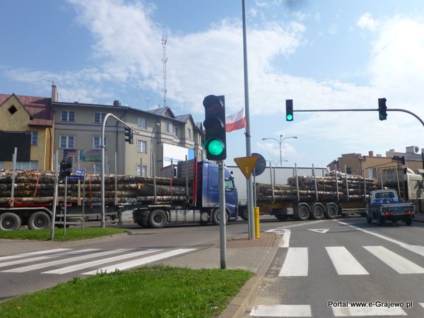 "Naruszenie przez kierującego zakazu wjeżdżania na skrzyżowanie, jeśli na skrzyżowaniu lub za nim nie ma miejsca do kontynuowania jazdy" - należy się nagroda 300 zł i 2 punkty (szkoda, że zawodowi kierowcy nie otrzymali takiej nauczki). Grajewskie światła, 01.08.2017 r., godz.15.45. fot. kierowca.