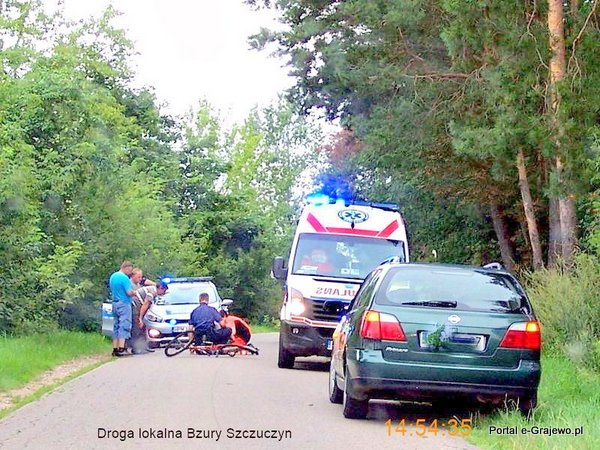 W czwartek 3.08.2017 w godzinach popołudniowych na trasie Bzury – Szczuczyn przebiegającej obok terenów leśnych zdarzył się wypadek. Pokrzywdzonym został młody chłopiec, który leżał na drodze przy rowerze.