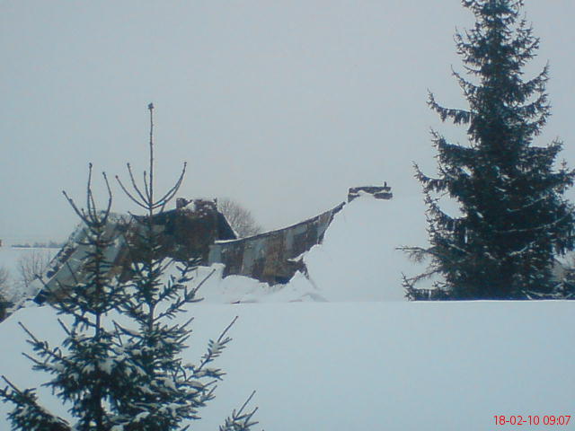 W Szczuczynie pod naporem śniegu zawalił się dach budynku. Podpis: Arczi