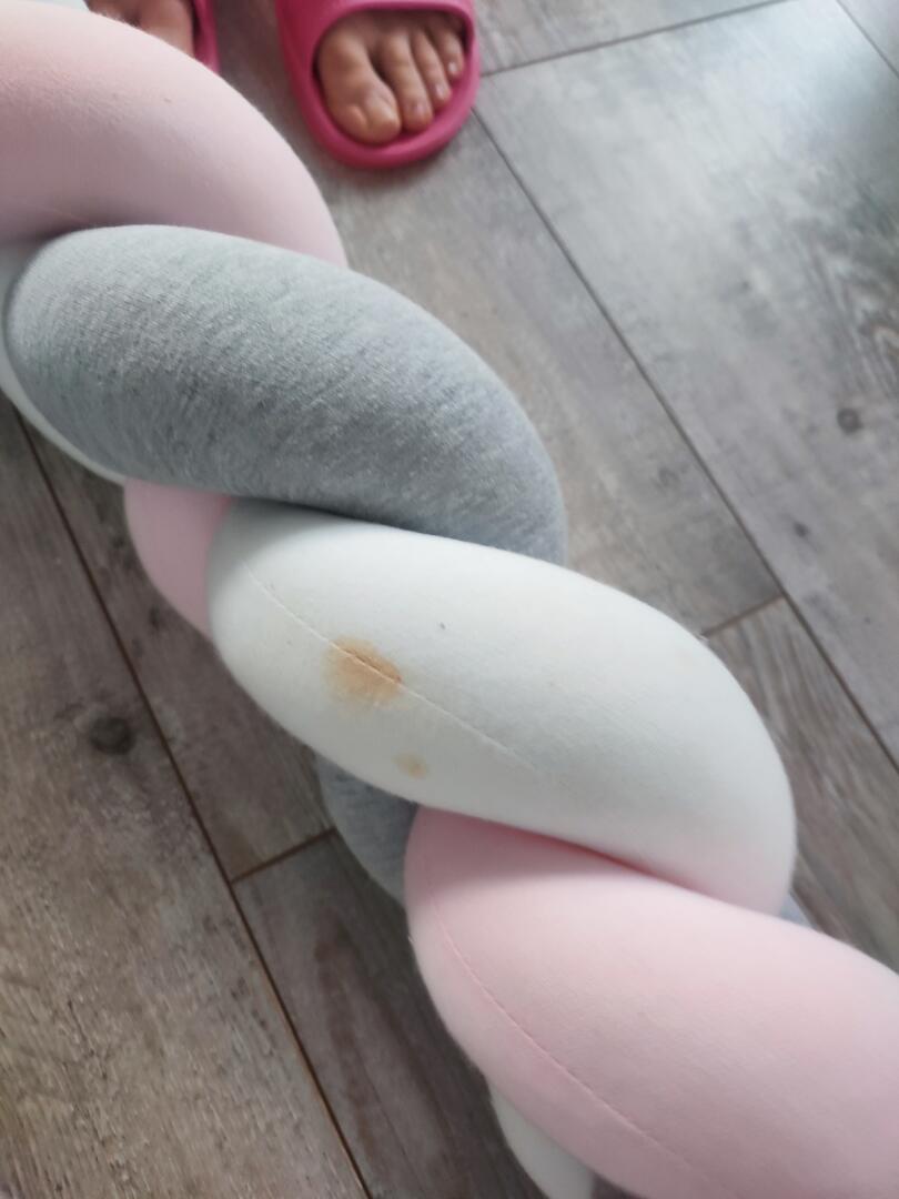 Warkocz do łóżeczka dla dziewczynki, ma 240 cm, firmy Przesplot, do odświeżenia, ma plamę, ale uważam, że do usunięcia, ja nie próbowałam.