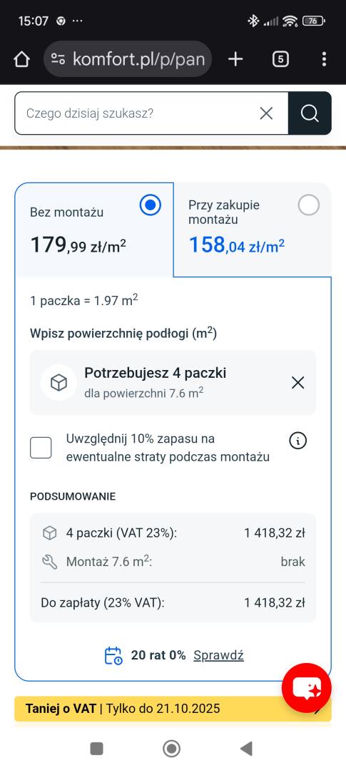 Odsprzedam 4 paczki paneli winylowych spc berry alloc zenn 55 herringbone cairo kl. 33 5+1,00 mm click z podkładem. Kupione w sklepie Komfort. Można obejrzeć w Grajewie mam jeszcze kilka paneli w otwartej paczce. Ok. 7.88 m2. Cena za 4 paczki.