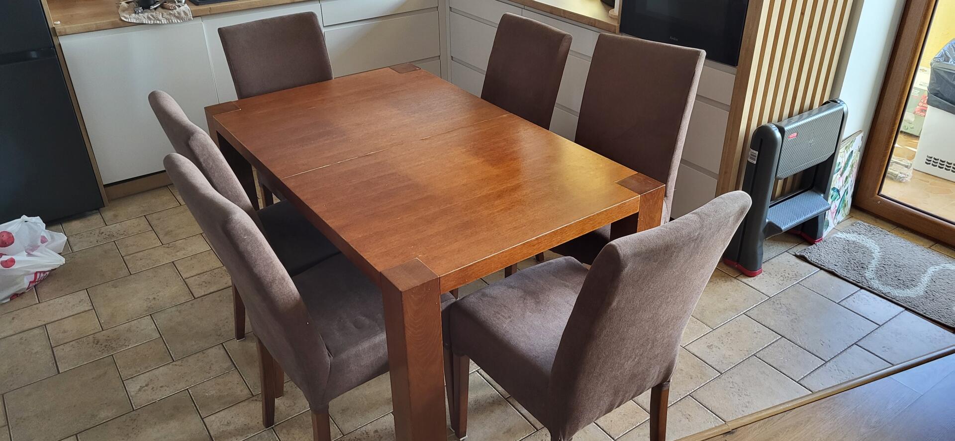 Sprzedam stół z krzesłami renomowanej firmy Paged. Wymiary stołu 140x85 po rozłożeniu 190cm.Cena do negocjacji.