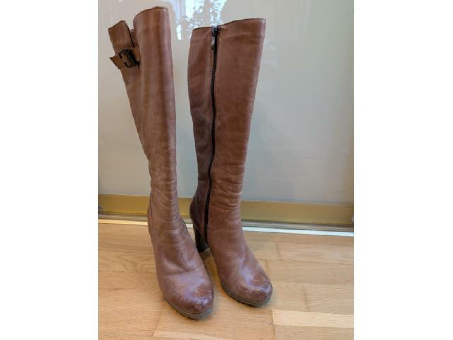 - skórzane buty w kolorze koniakowym, rozmiar 37;