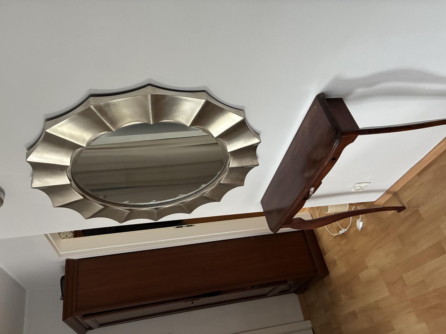Sprzedam lustro z konsolą, stan bardzo dobry. Lustro o średnicy 87/60 cm w kolorze szampańskiego złota. Konsola wykonana z drewna litego w kolorze kasztana o wymiarach: