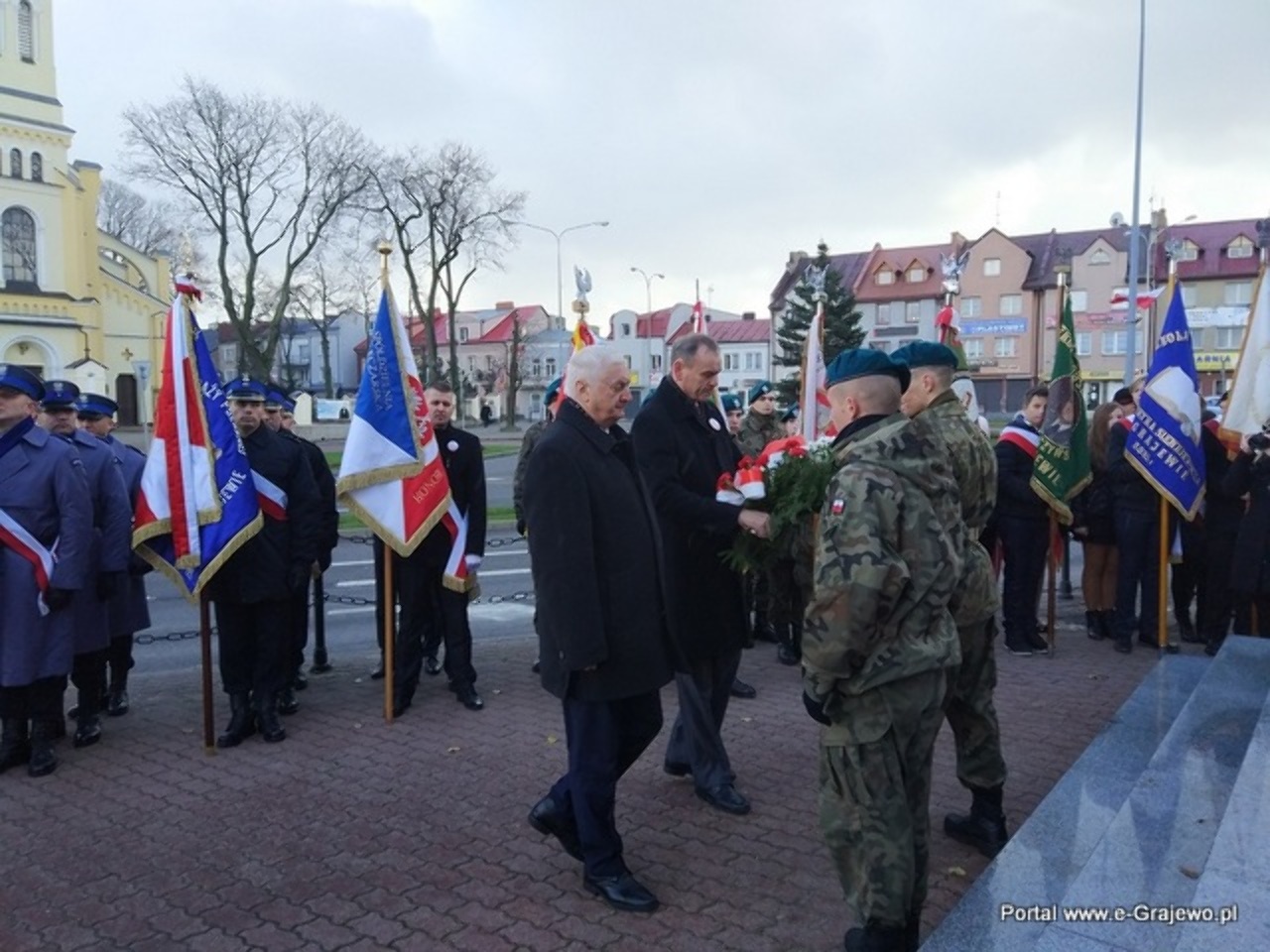 Dalsze uroczystości kontynuowane były na Placu Niepodległości, na który wszyscy zgromadzeni przemaszerowali w tradycyjnym pochodzie na którego czele szli członkowie Orkiestry Dętej OSP z Grajewa. Pod pomnikiem Niepodległości odczytano list Sekretarza Stanu w Ministerstwie Spraw Wewnętrznych i Administracji Pana Jarosława Zielińskiego z okazji Narodowego Święta Niepodległości.