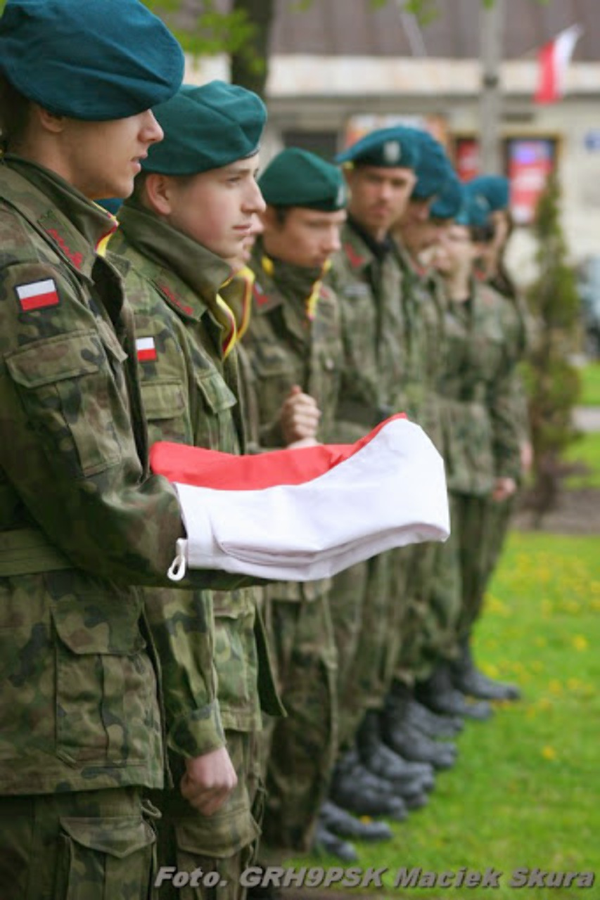 3 maja – dla jednych środek długiego weekendu, kolejny wolny dzień, który można spędzić przy grillu i piwie, dla innych dzień uroczysty, dzień zaszczytnych obowiązków. Tak też jest w przypadku członków grajewskiej GRH 9 PSK, którzy mimo rozlicznych obowiązków prywatnych, czasem nawet wbrew zdaniu najbliższych poświęcili kilka godzin tego świątecznego dnia, by godnie reprezentować barwy 9 pułku strzelców konnych podczas uroczystości rocznicowych w Grajewie. Tradycyjnie już, podobnie jak przy okazji innych świąt państwowych wystawiliśmy umundurowany poczet sztandarowy, stanęliśmy na warcie przy Pomniku Niepodległości oraz złożyliśmy pod nim wraz z kombatantami z Klubu Byłych Żołnierzy 9 PSK i 9 PSK AK i przedstawicielami Towarzystwa Przyjaciół 9 PSK wiązanki kwiatów. Jakżeby mogło być jednak inaczej, skoro w 2009 r. byli żołnierze 9 PSK i 9 PSK AK przekazali nam replikę pułkowego sztandaru z zaszczytnym zobowiązaniem dalszego kultywowania barw i tradycji pułków, w barwach których ich koledzy ginęli na polu walki.