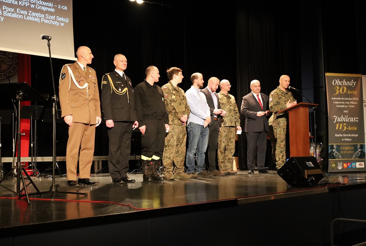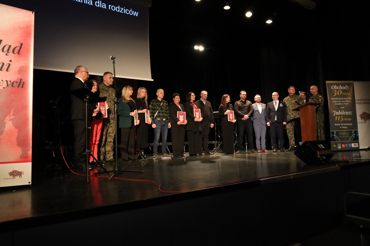 Po części religijnej uczestnicy przenieśli się do Grajewskiego Centrum Kultury, gdzie kontynuowano uroczystości. Centralnym punktem spotkania było wręczenie pamiątkowych medali, odznaczeń i wyróżnień osobom wspierającym działalność Związku Strzeleckiego, jego zasłużonym członkom, nauczycielom oraz rodzicom młodzieży Strzeleckiej. W ten sposób podkreślono znaczenie wieloletniej pracy, zaangażowania i służby na rzecz kultywowania tradycji oraz wychowania patriotycznego młodego pokolenia.