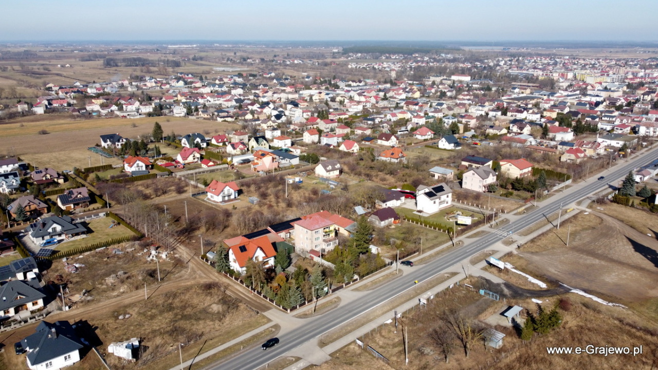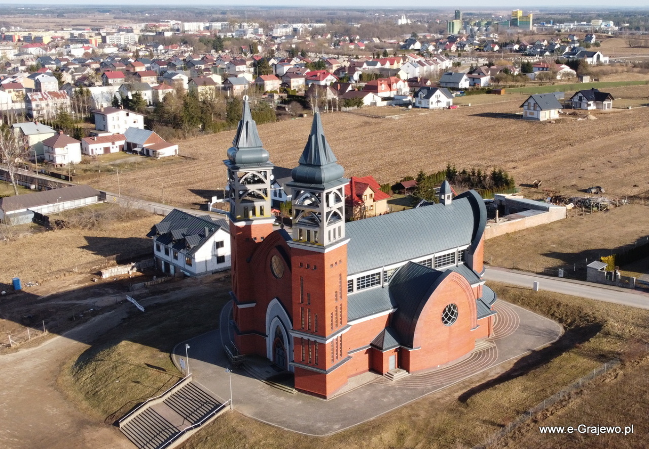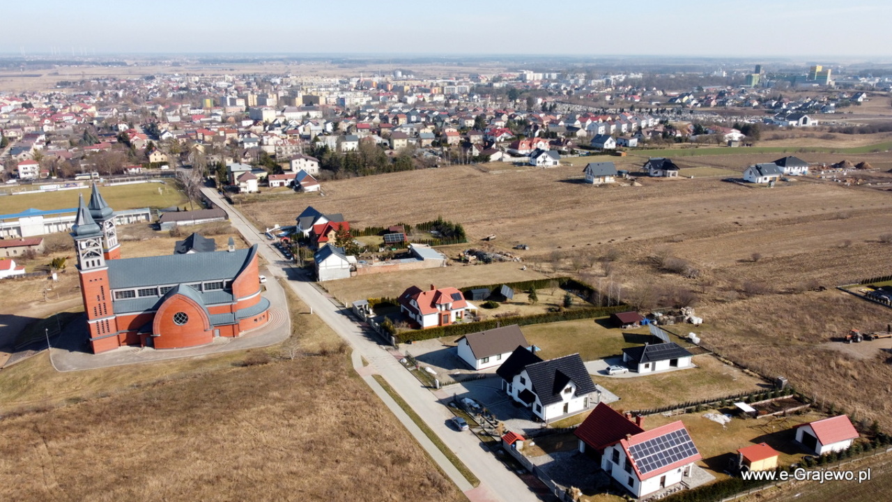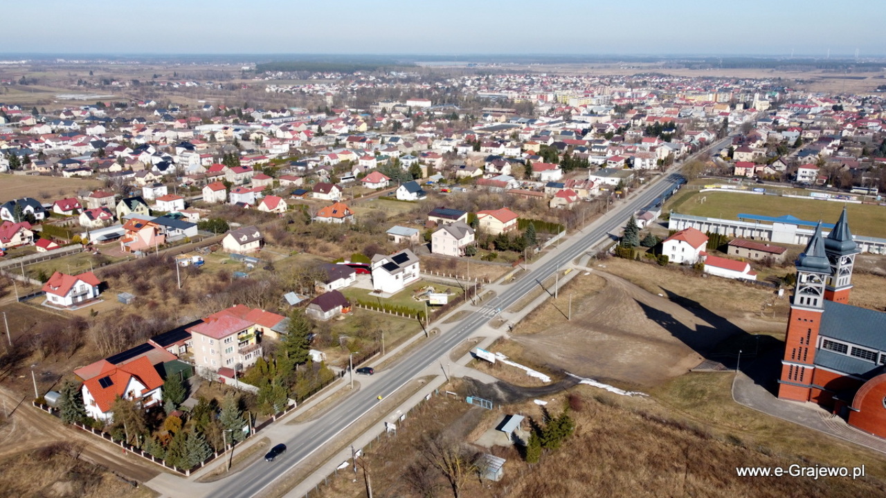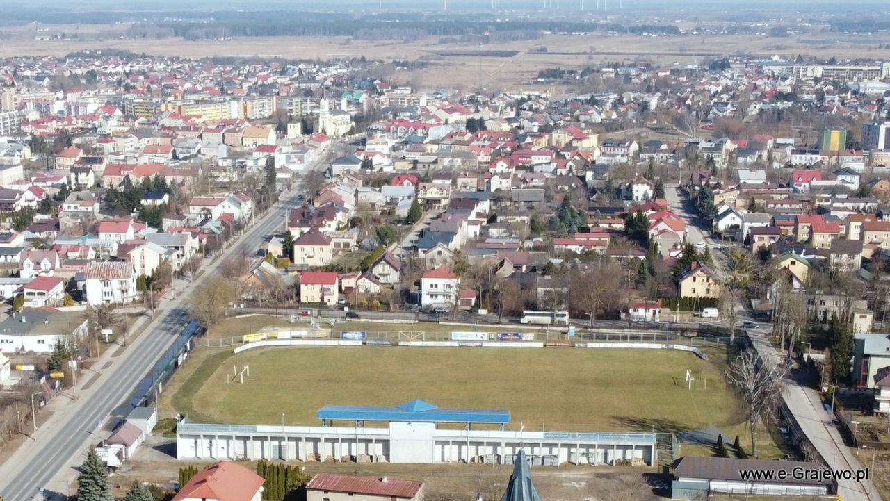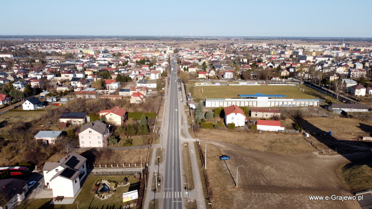 Okolice ul. Piłsudskiego, Braci Świackich, kościół parafialny p.w. św. Jana Pawła 2, stadion Warmii Grajewo.