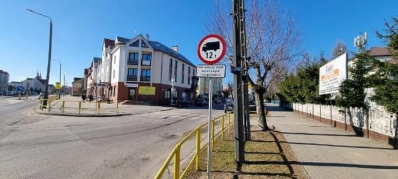 Zakaz ruchu pojazdów o masie całkowitej przekraczającej 12 ton, z wyłączeniem zaopatrzenia i służb komunalnych.