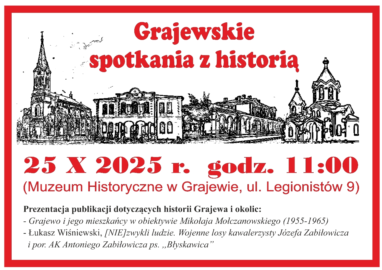 Grajewska Izba Historyczna zaprasza na kolejne „Grajewskie spotkania z historią”, które odbędą się 25 października 2025 r. o godz. 11:00 w Muzeum Historycznym w Grajewie (ul. Legionistów 9).