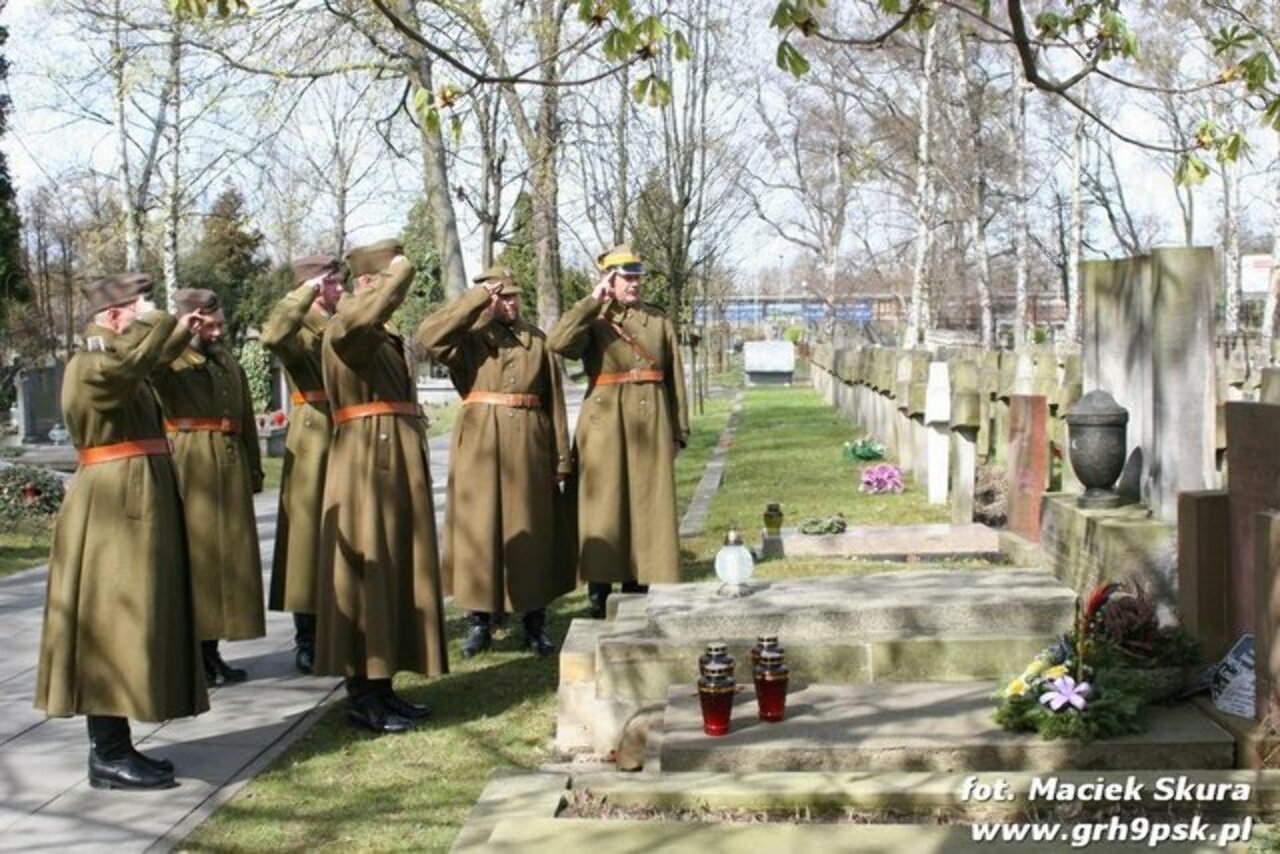 Jednak nie wszyscy grajewianie wiedzą, że na tej warszawskiej nekropolii, gdzie znajdują się trzy Aleje Zasłużonych, w których spoczywają prochy ludzi wielce zasłużonych dla Polski, pochowane są również osoby bardzo mocno związane z przedwojennym Grajewem. A są to m.in. pułkownik Kaczkowski Franciszek – pierwszy dowódca 9 Pułku Strzelców Konnych oraz pułkownik Tadeusz Falewicz – dowódca tego pułku w latach 1931–1939, który swój wrześniowy szlak bojowy zakończył bitwą pod Kockiem. Niedawno, bo w 2003 roku, do ich grona dołączył płk Hake Czesław – były oficer rezerwy 9 psk z okresu kampanii wrześniowej 1939 r. i późniejszy żołnierz AK ps. „Filip”. O swoich bohaterskich żołnierzach pamiętają członkowie Grupy Rekonstrukcji Historycznej 9 PSK. Podobnie jak w latach ubiegłych odwiedzili oni mogiły swoich zasłużonych dowódców, zapalając im symboliczne znicze. W tym roku, złożyli również hołd ofiarom Zbrodni Katyńskiej, których symboliczny grób znajduje się na tym cmentarzu. W ten sposób oddali hołd pułkownikowi Grabowskiemu Tadeuszowi – dowódcy 9 PSK w latach 1928–1931, który został rozstrzelany w Charkowie. Ostatnim akordem wizyty na Wojskowych Powązkach w Warszawie, było złożenie kwiatów pod Pomnikiem Ofiar Katastrofy Smoleńskiej i pochylenie się nad mogiłami dwudziestu czterech uczestników tej tragedii.