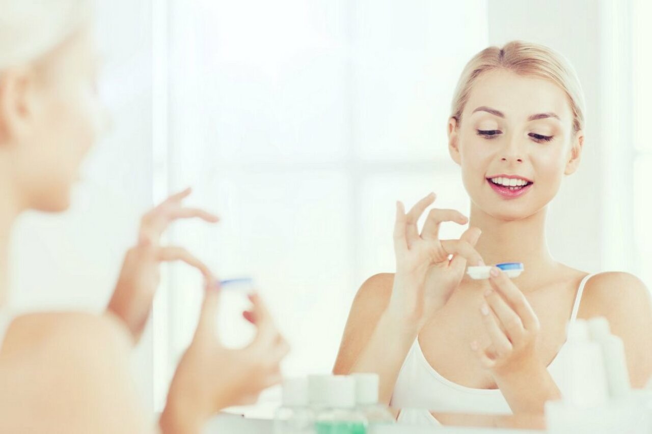 Delikatnie wysuń szkło z blistra na czubek wskazującego palca i sprawdź, czy krawędź tworzy idealną "miseczkę" - to najprostszy test, jak założyć soczewki właściwą stroną. Drugą ręką unieś górną powiekę, łapiąc rzęsy blisko nasady, a środkowym palcem ręki z soczewką odciągnij dolną powiekę. Spójrz prosto w lustro albo lekko w bok, aby zminimalizować odruch ucieczki oka. Delikatnie dotknij szkłem środka oka; po zetknięciu puść najpierw dolną, potem górną powiekę i pozwól, by kilka naturalnych mrugnięć "ułożyło" szkło. Jeśli obraz jest lekko zamglony, zakropl nawilżenie i odczekaj chwilę - to zwykle finalny krok do pełnego komfortu.