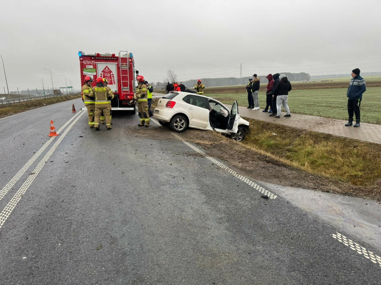 Doszło tam do wypadku samochodu osobowego marki VW, którego kierujący najprawdopodobniej wskutek niedostosowania prędkości do warunków pogodowych zjechał z drogi w przydrożny rów.