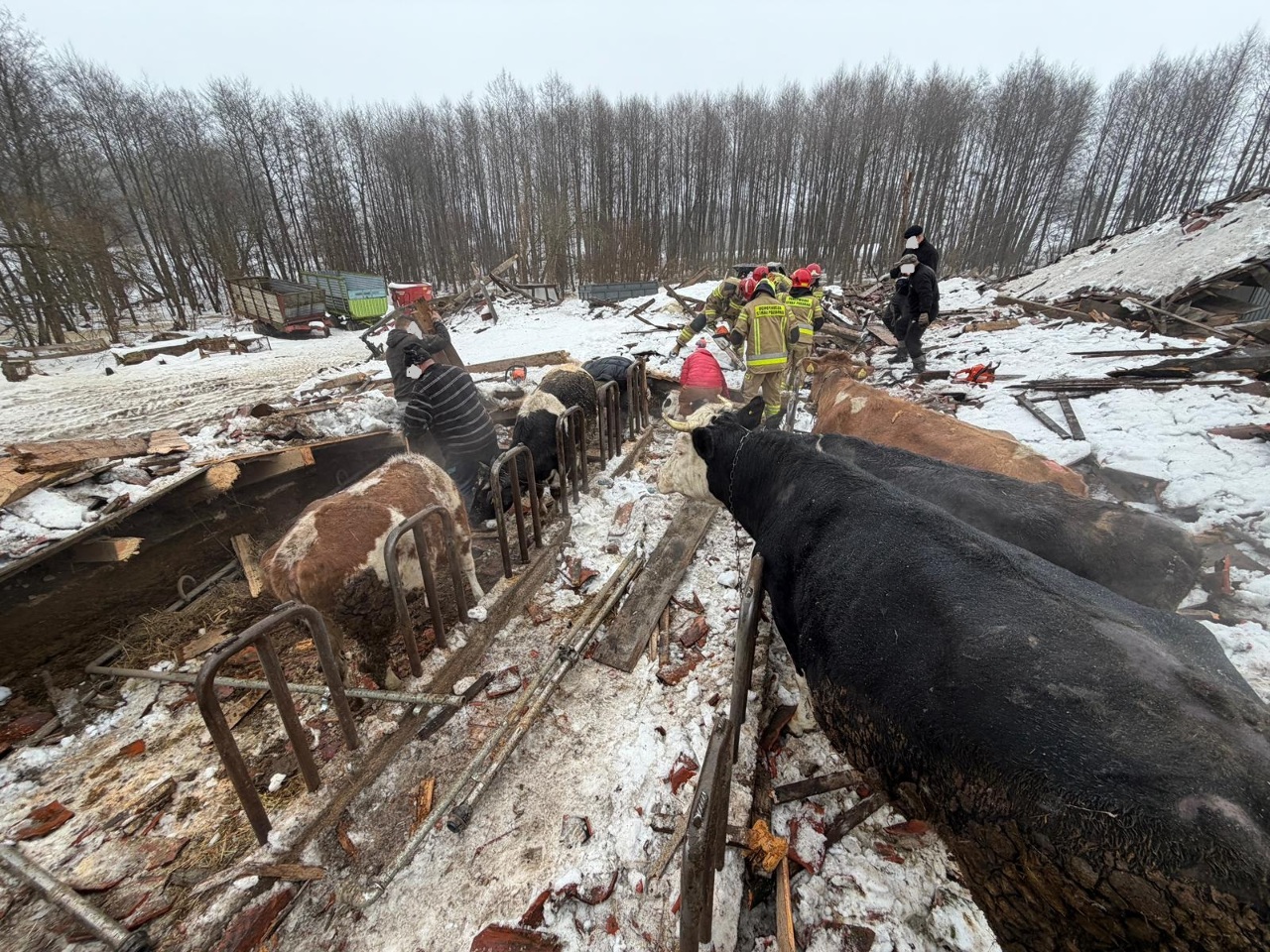 W poniedziałek 23 lutego br. w Laśmiadach - powiat ełcki - doszło do katastrofy budowlanej. Kilka minut przed godziną dziewiątą w jednym z gospodarstw zawalił się dach na budynku gospodarskim, w którym przebywało 23 sztuki bydła. W wyniku zdarzenia zwierzęta zostały uwięzione pod konstrukcją dachu.