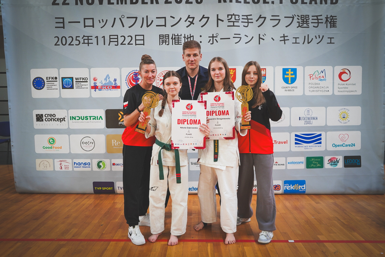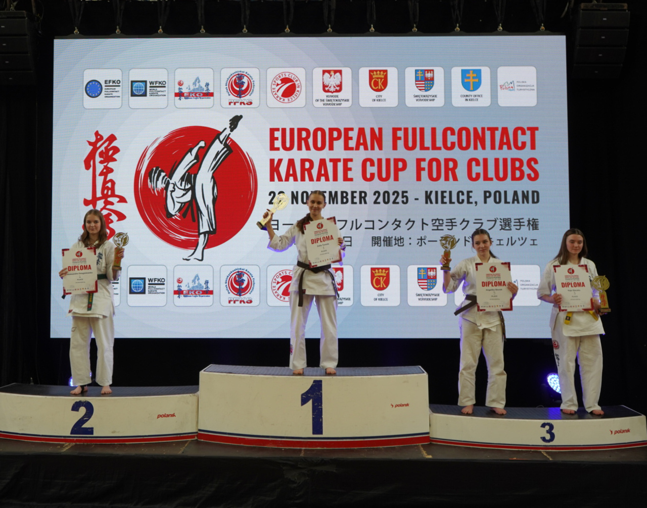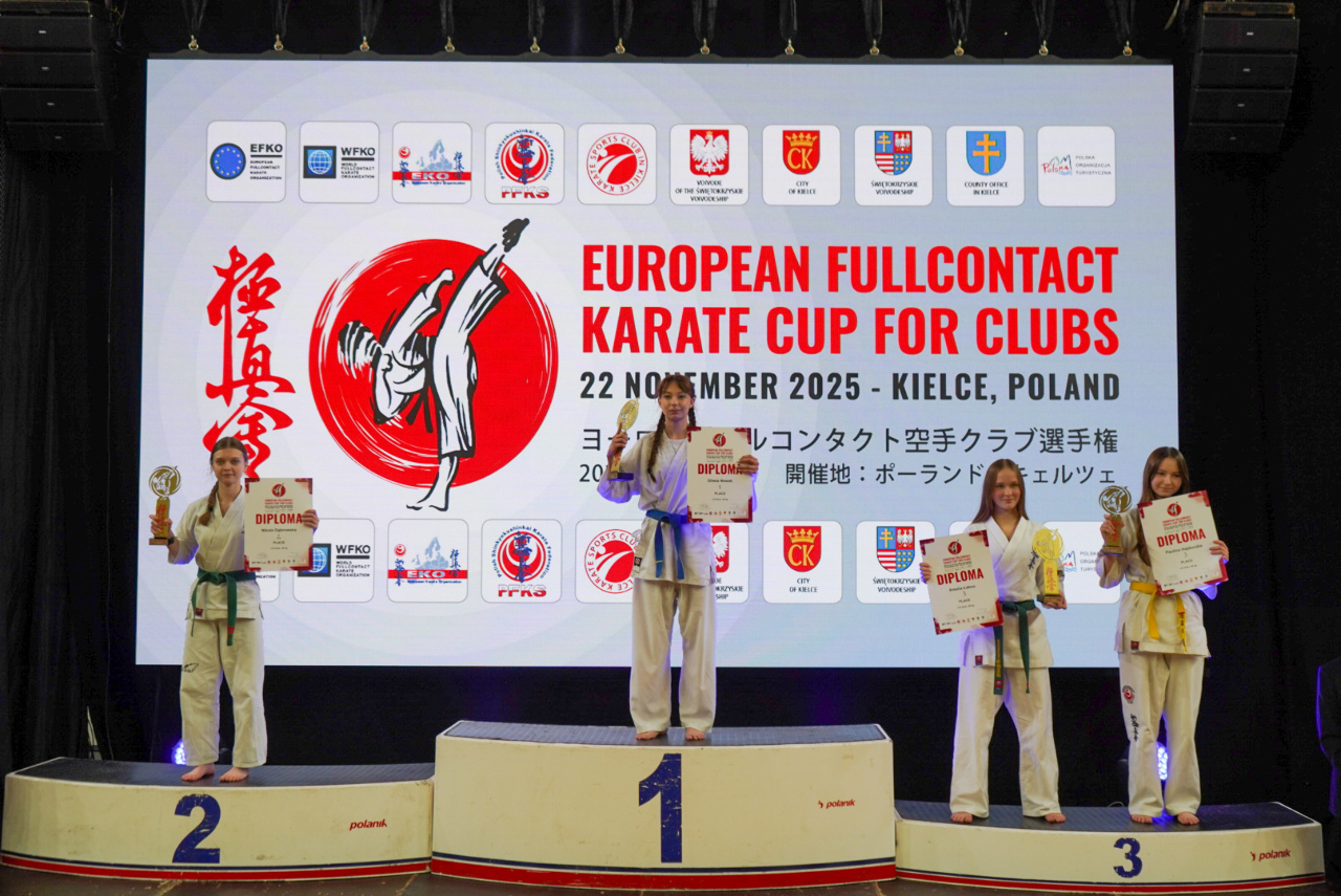 Z wielką radością informujemy o doskonałych wynikach, jakie odniosły zawodniczki Klubu Sportowego Ookami podczas turnieju European Fullcontact Karate Cup for Clubs, który odbył się 22 listopada 2025 roku w Hali Legionów w Kielcach. Prestiżowa impreza zorganizowana z rozmachem dostarczyła wielu emocji i wspaniałych walk w wykonaniu zawodniczek z Grajewa.