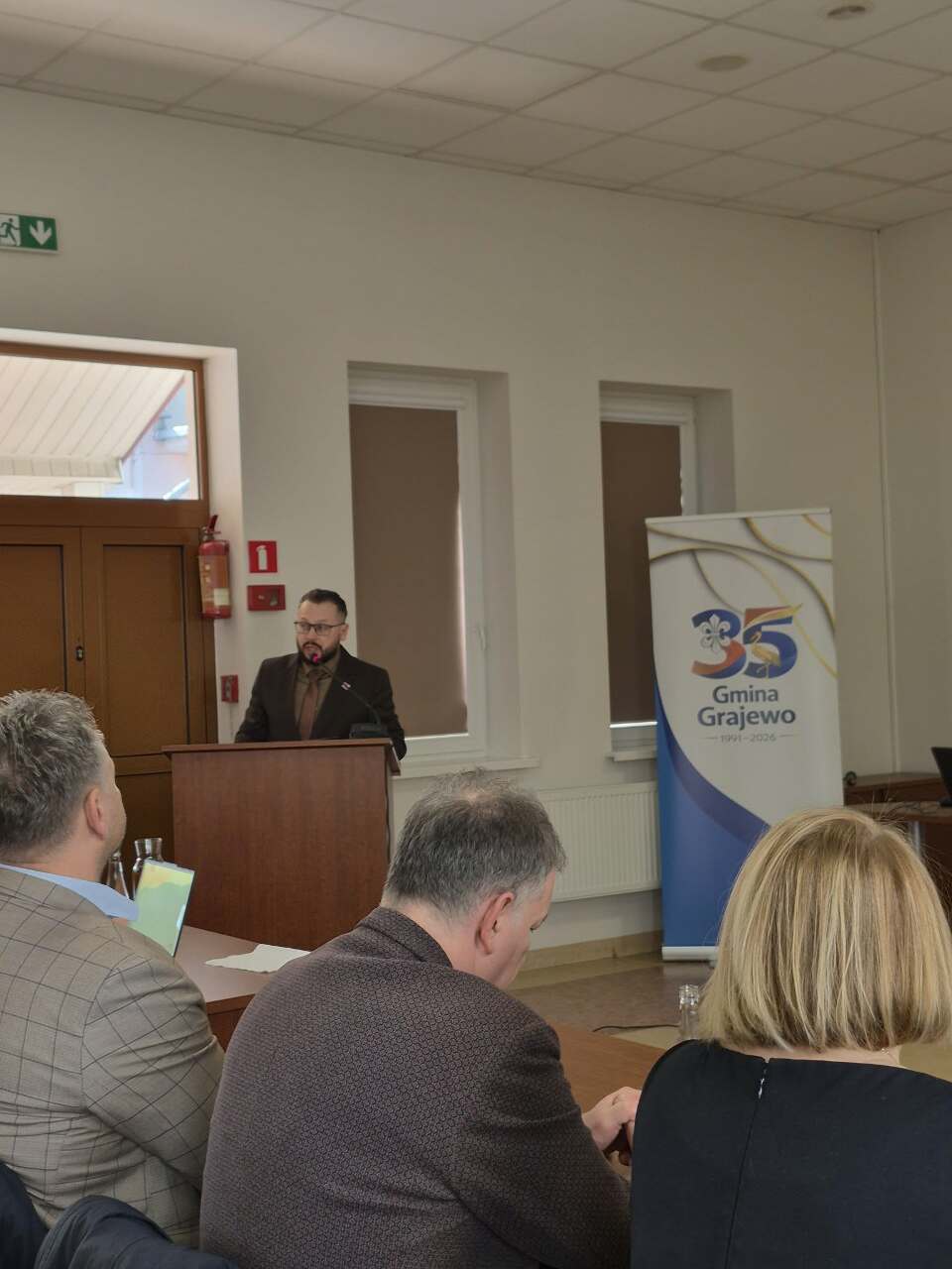 W dniu 19 marca w Urzędzie Gminy Grajewo odbyła się konferencja poświęcona rozwojowi odnawialnych źródeł energii w gminach. W wydarzeniu wzięli udział przedstawiciele samorządów z województw podlaskiego oraz warmińsko-mazurskiego, a także przedstawiciele firm działających w sektorze energetyki wiatrowej.