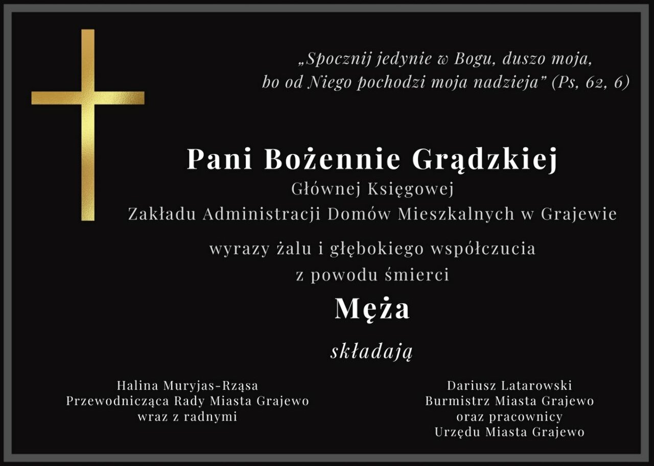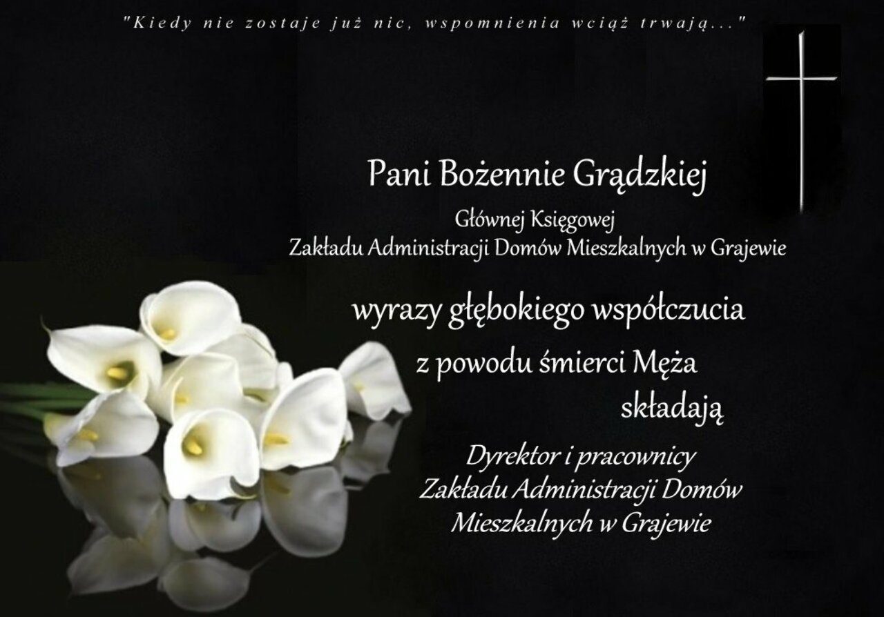 Najszczersze kondolencje dla Waszej rodziny w związku ze śmiercią bliskiej osoby. W tych chwilach żałoby, życzę Wam otuchy, siły i jedności.