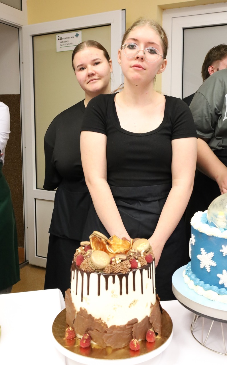 Trzecie miejsce zajęły Łucja Stepnowska i Julia Olszewska (kl. IV). Ich tort wyróżniał się harmonijnym smakiem oraz niezwykle estetycznym wykończeniem. Na drugim miejscu uplasowali się Jakub Markowski i Artur Gleba (kl. V), którzy zachwycili jury wyjątkowo dopracowaną kompozycją smakową z użyciem różnych rodzajów czekolady.