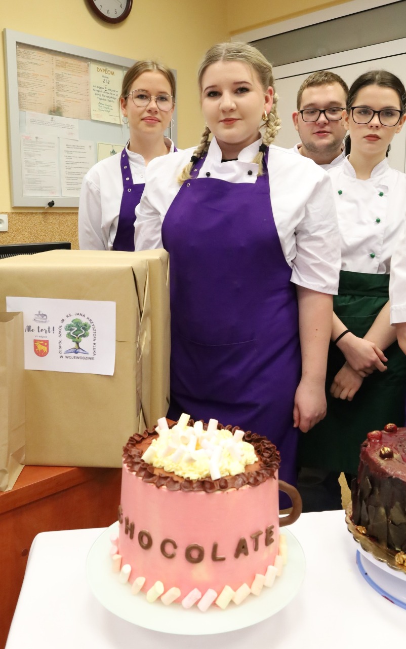 4 grudnia 2025 roku w Zespół Szkół im. ks. Jana Krzysztofa Kluka w Wojewodzinie odbyła się VII edycja szkolnego konkursu cukierniczego „Ale Tort!”. Wydarzenie, które na stałe wpisało się w tradycję szkoły, ponownie przyciągnęło liczne grono utalentowanych uczniów klas gastronomicznych. Młodzież, pracując w dwuosobowych zespołach, przygotowała autorskie torty oceniane pod względem smaku, estetyki, kreatywności i techniki wykonania.