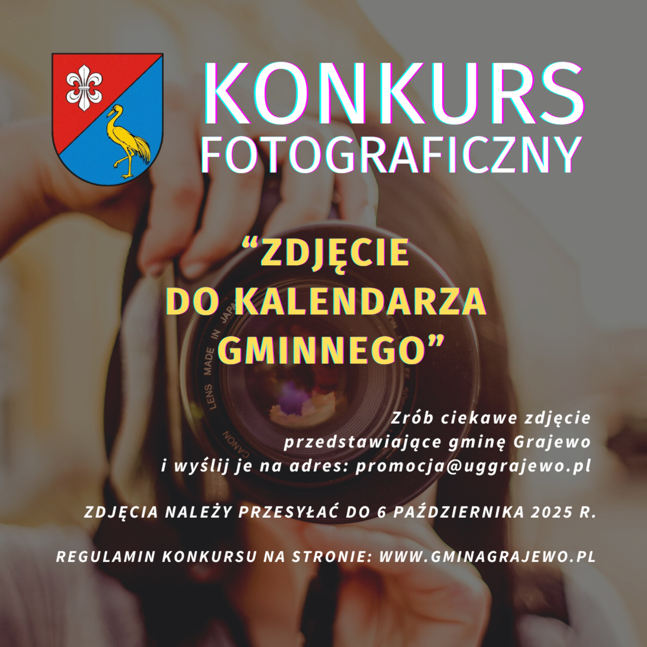 Zapraszamy do wzięcia udziału w konkursie fotograficznym „Zdjęcie do kalendarza Gminy Grajewo”. Wyłonione zdjęcia umieszczone będą w kalendarzu Gminy Grajewo na 2026 rok.