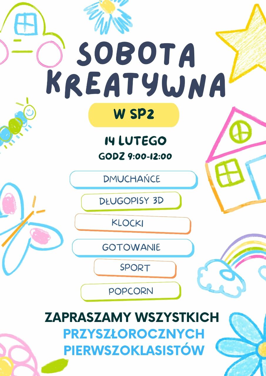 Serdecznie zapraszamy dzieci z naszego miasta i okolic, które w przyszłym roku wybierają się do pierwszej klasy do odwiedzenia naszej szkoły w ramach Kreatywnej Soboty już w tę sobotę 14 lutego godz. 9:00-12:00.