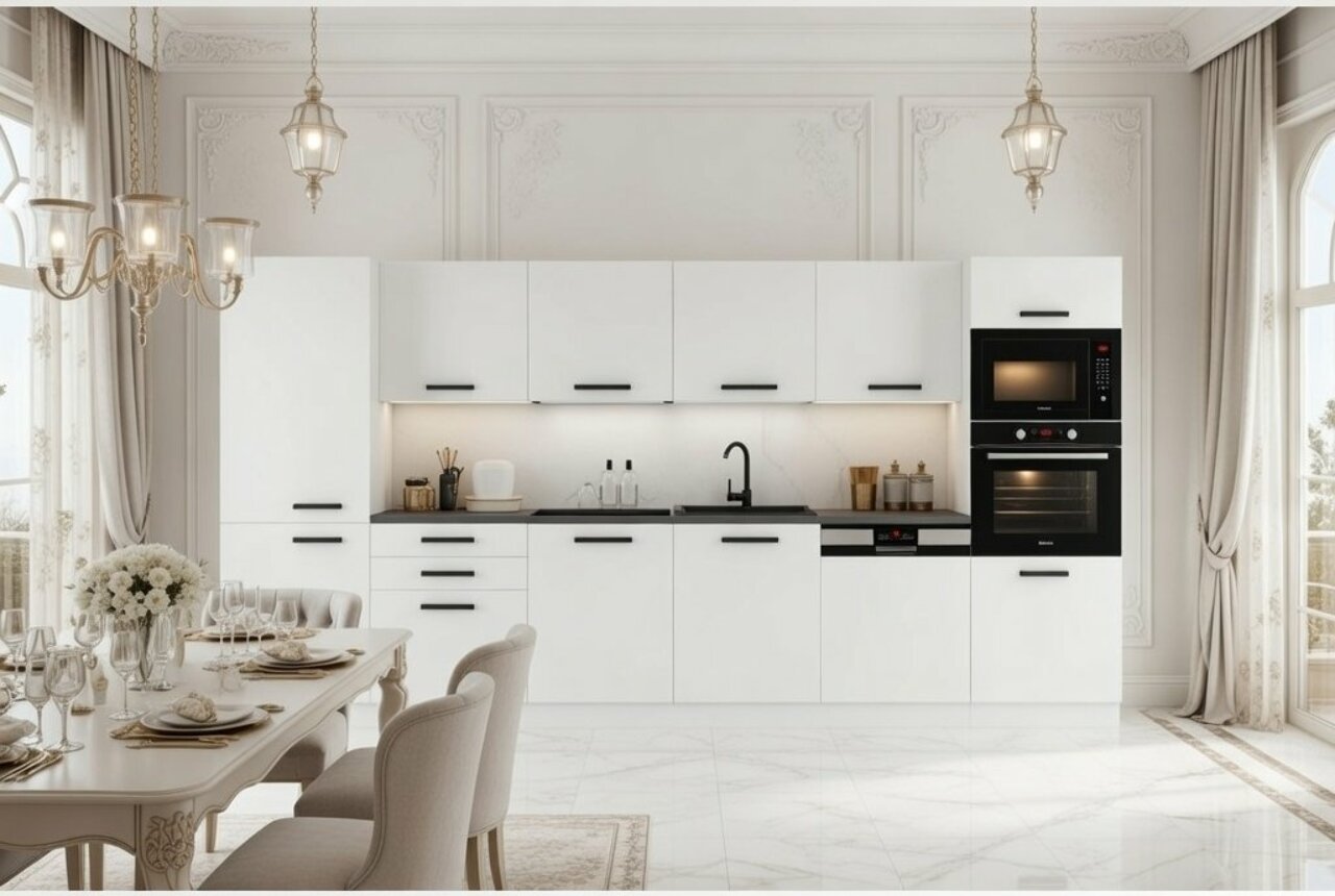 Biała kuchnia z połyskującymi frontami to rozwiązanie, które od lat nie wychodzi z mody i nadal świetnie sprawdza się w nowoczesnych wnętrzach. Jasna zabudowa optycznie powiększa przestrzeń, a gładkie powierzchnie odbijają światło, dzięki czemu kuchnia wydaje się bardziej przestronna i uporządkowana. To szczególnie ważne tam, gdzie liczy się każdy metr i wygoda codziennego użytkowania. Meble Belini pozwalają osiągnąć taki efekt bez nadmiernych wydatków, dzięki czemu możesz stworzyć kuchnię, która wygląda nowocześnie i jednocześnie dobrze sprawdza się w codziennym funkcjonowaniu.