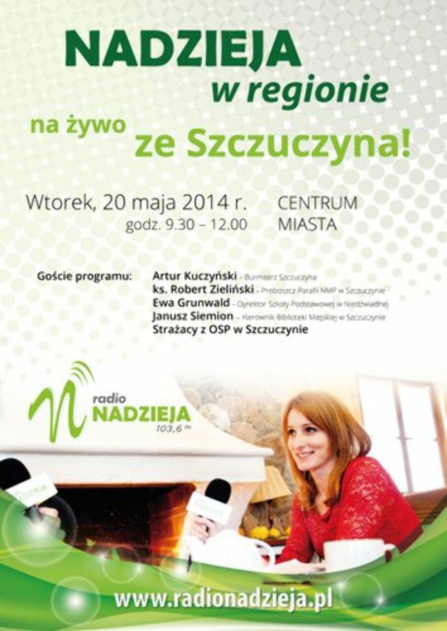 Program Nadzieja w regionie czyli terenowe studio Radia Nadzieja, już w najbliższy wtorek (20 maja) pojawi się w Szczuczynie!