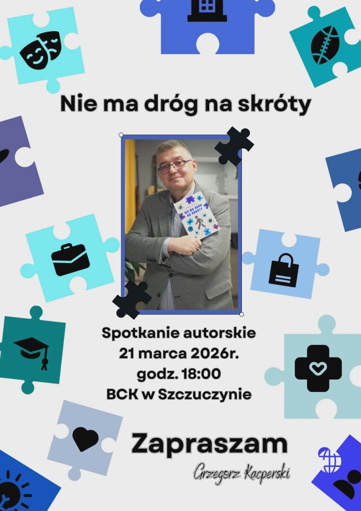 W nadchodzącą sobotę zapraszamy do Biblioteki – Centrum Kultury w Szczuczynie na spotkanie autorskie „Bez skrótów. Słowo & Dźwięk” z Grzegorzem Kacperskim, autorem książki „Nie ma dróg na skróty”. Będzie to doskonała okazja do rozmowy z autorem, poznania kulis powstawania książki oraz spędzenia inspirującego wieczoru ze słowem i muzyką.