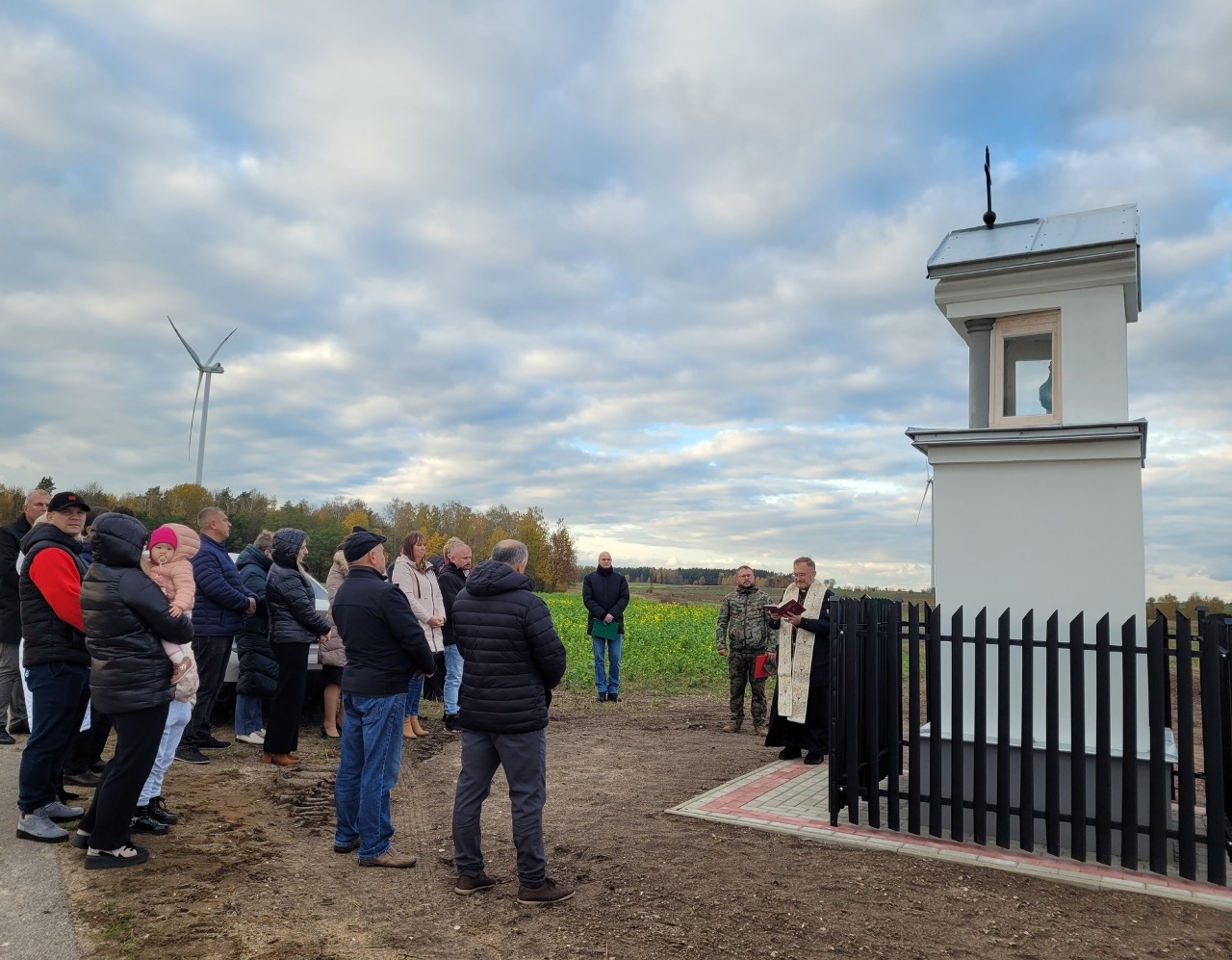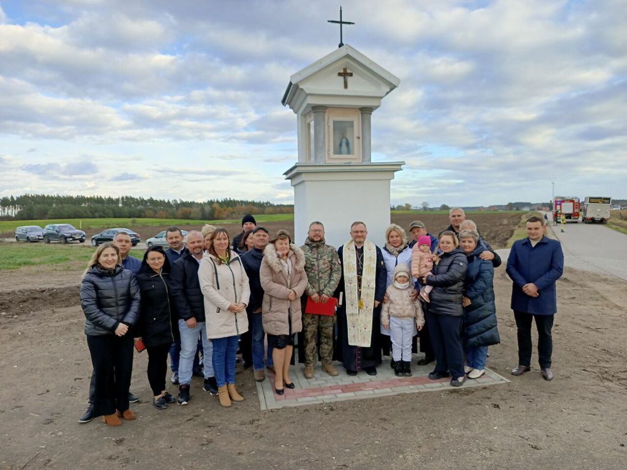 Mieszkańcy wsi Kurejwa, Proboszcz Parafii pw. Jana Pawła II w Grajewie Ks. kan. Tomasz Chludziński oraz Wójt Gminy Grajewo Grzegorz Górski w sobotę, 25 października 2025 r., uczestniczyli w uroczystym odsłonięciu i poświęceniu wyremontowanej przydrożnej kapliczki.
