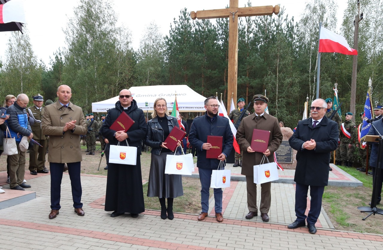 W dalszej części uroczystości Starosta Grajewski wraz z Przewodniczącym Rady Powiatu Grajewskiego Grzegorzem Gardockim podziękowali współorganizatorom za zaangażowanie we wspólne działania mające na celu podkreślenie wagi pamięci o tych, którzy w dramatycznych chwilach historii oddali życie w imię wolności i godności ludzkiej. Wyróżnieni zostali: Monika Baczar z Instytutu Pamięci Narodowej, Oddział w Białymstoku (odbierając także podziękowania w imieniu Dyrektora Oddziału dr. Marka Jedynaka), Wójt Gminy Grajewo Grzegorz Górski, Dyrektor Biebrzańskiego Parku Narodowego Artur Wiatr oraz Ks. Krzysztof Szakiel.