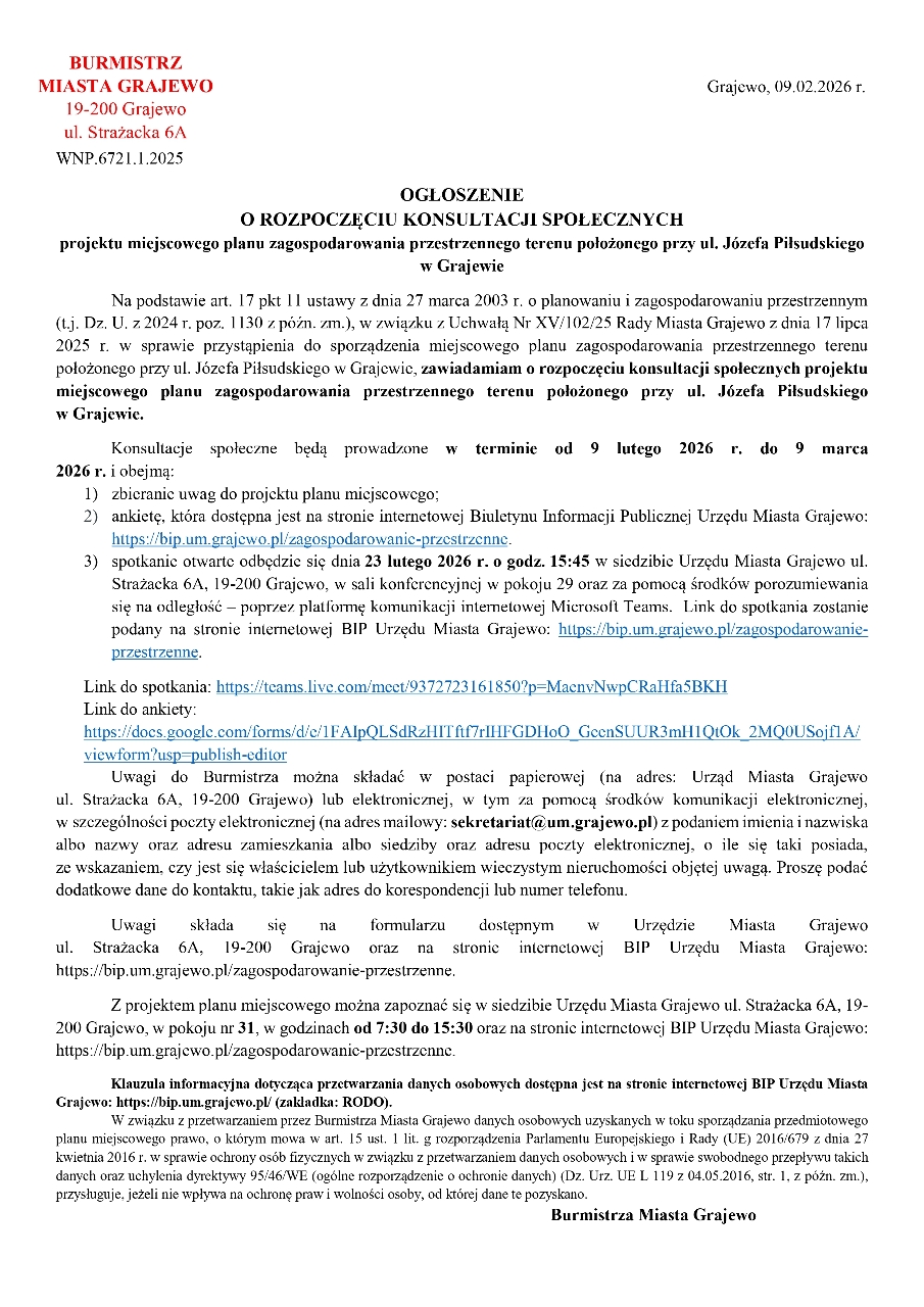 Informacja Burmistrza Miasta Grajewo