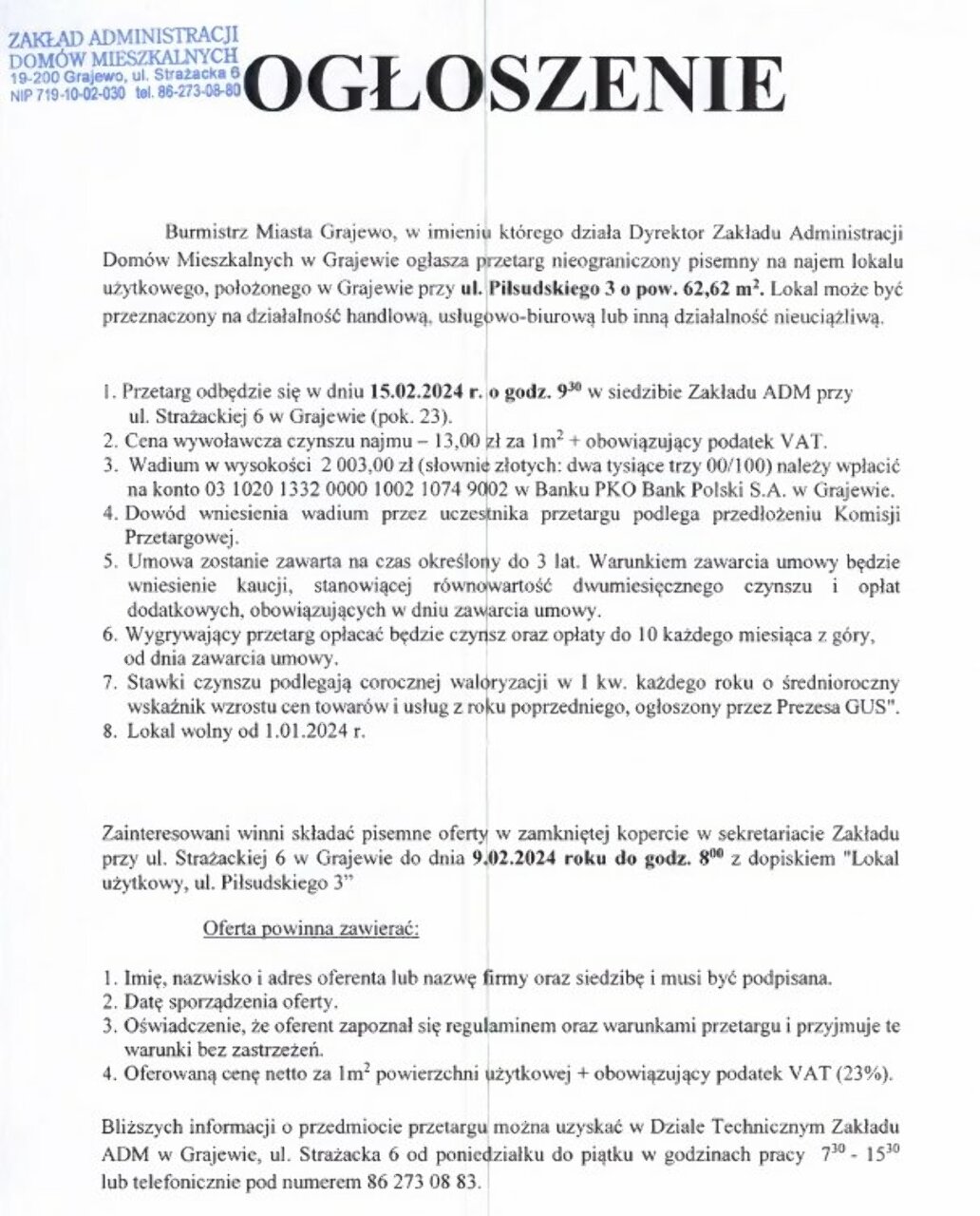 2. ul. Piłsudskiego 3 w Grajewie o pow. 62,62 mkw.