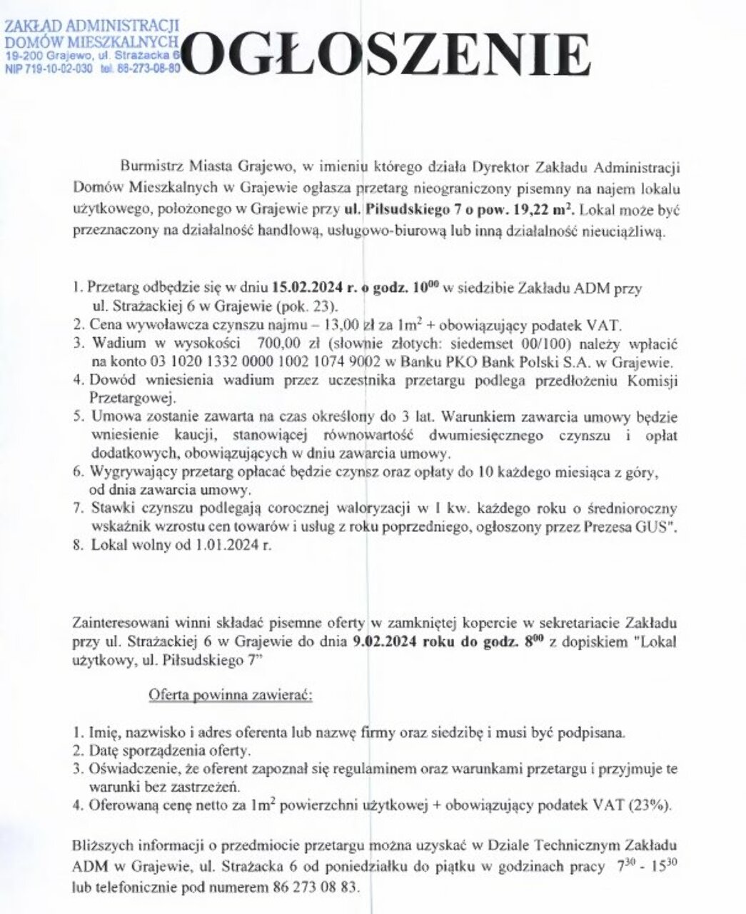 1. ul. Piłsudskiego 3 w Grajewie o pow. 20,00 mkw.
