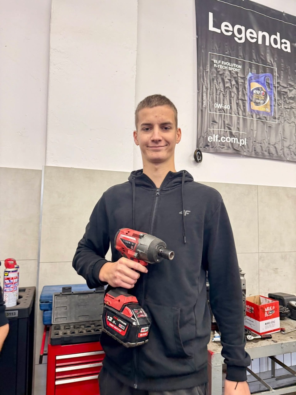 Podczas Pikniku uczniowie rywalizowali w trzech konkurencjach: montaż i demontaż kół, diagnostyka silnika kamerą endoskopową oraz test wiedzy teoretycznej. Liczyły się zarówno precyzja i szybkość, jak i wiedza praktyczna – wszystko to, co jest potrzebne dobremu mechanikowi.