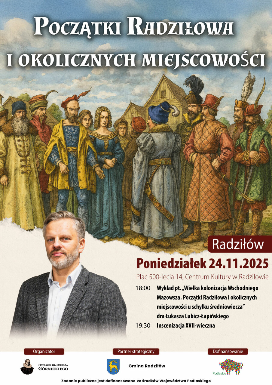 Serdecznie zapraszamy na wykład dr Łukasza Lubicza-Łapińskiego „Wielka Kolonizacja Wschodniego Mazowsza. Początki Radziłowa i okolicznych miejscowości”.